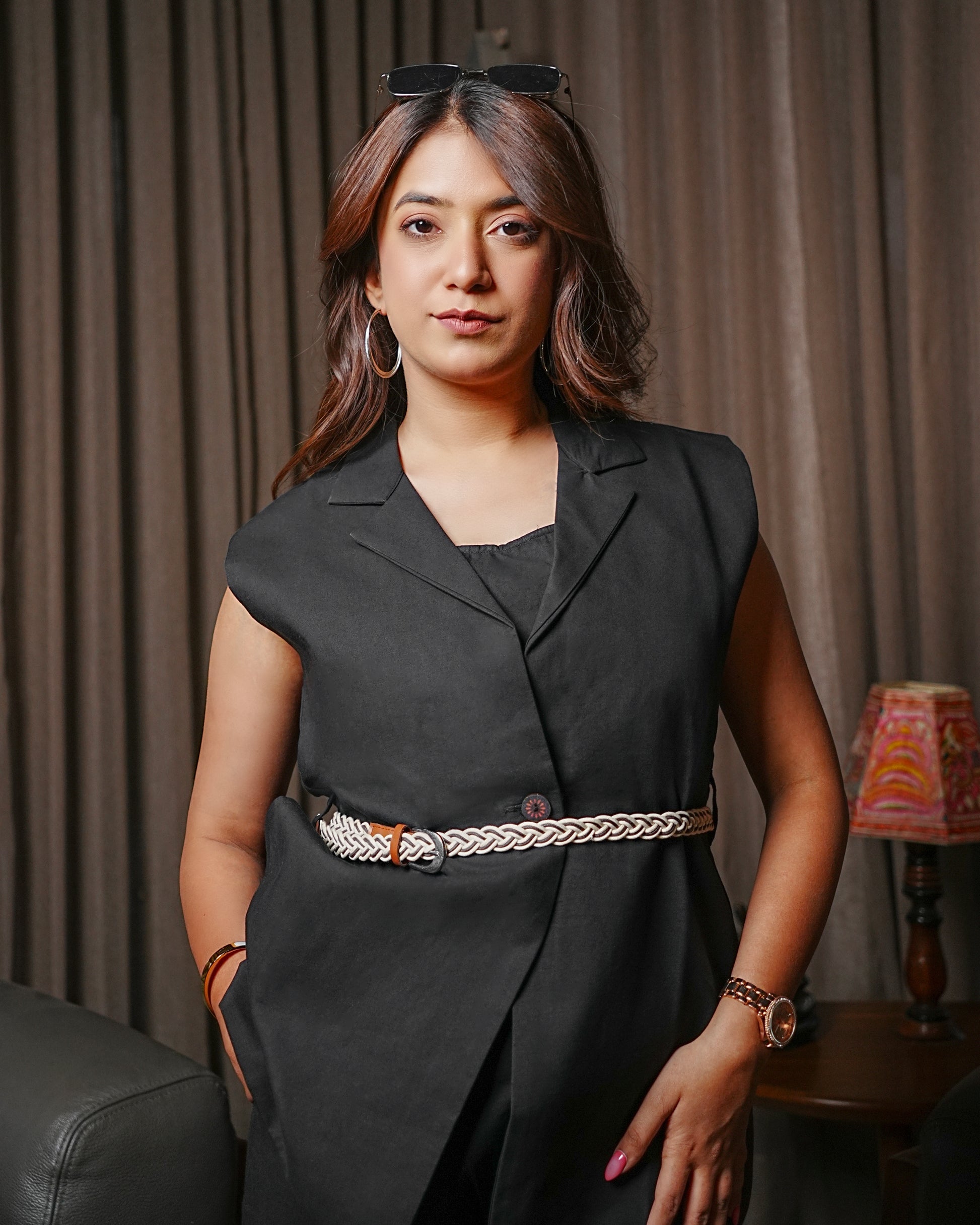 Bold, minimal, and undeniably elegant — the Noir Muse Sleeveless Coord Set is made for the modern woman who owns every room she walks into. This power-packed ensemble features a tailored sleeveless longline blazer-style top, paired with matching tapered trousers. The belted waistline with a subtle shimmer detailing adds a flattering silhouette and a dash of glam.