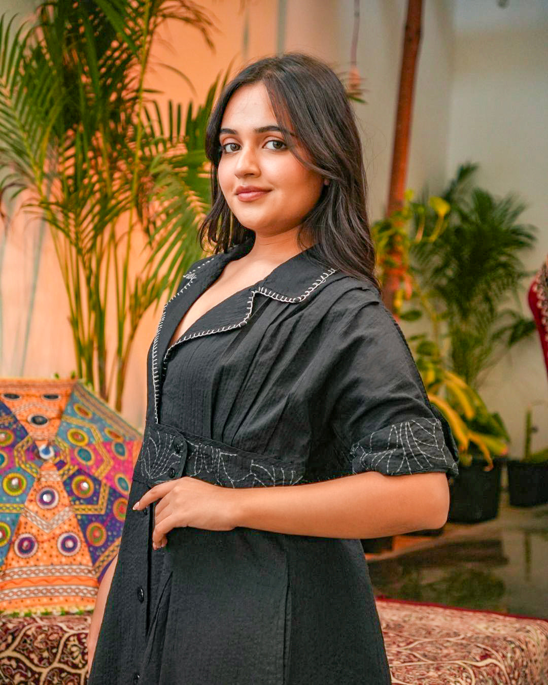 Elegant, versatile, and effortlessly chic – this Black Embroidered A-Line Tunic Dress is a wardrobe essential for the modern woman. Tailored in a flattering mid-length A-line silhouette, this tunic combines traditional craftsmanship with a contemporary design for a refined everyday look.